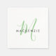Elegant Modern White Green Script Monogram Napkins. An elegant green script monogram combined with a clean black san-serif font makes for a contemporary look.