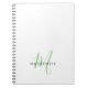 Elegant Modern White Green Script Monogram Notebook