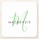 Elegant Modern White Green Script Monogram Square Paper Coaster