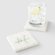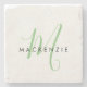 Elegant Modern White Green Script Monogram Stone Coaster