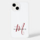 Elegant Modern White Red Script Monogram Case-Mate iPhone Case