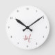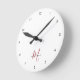 Elegant Modern White Red Script Monogram round clock. An elegant red script monogram combined with a clean black san-serif font makes for a contemporary look.