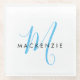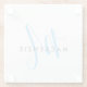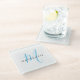 Elegant Modern White Sky Blue Script Monogram Glass Coaster