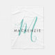 Elegant Modern White Teal Script Monogram Fleece Blanket