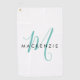 Elegant Modern White Teal Script Monogram Golf Towel