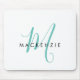 Elegant Modern White Teal Script Monogram Mouse Pad