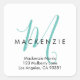 Elegant Modern White Teal Script Monogram Return Address Label. An elegant teal script monogram combined with a clean black san-serif font makes for a contemporary look. Note: For some initials, the descender (lower part) may overlap the address, but shouldn't interfere with legibility.