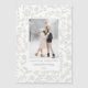Elegant, chic and minimal monochrome design featuring single photo template, faux sculpted silver winter botanical pattern and editable text fields.