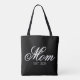 Celebrate a new chapter with this elegant Mom established year tote. Featuring a sophisticated white script on a classic black background, it’s a perfect gift for new mothers or baby showers. This stylish, minimalist design offers a chic way to carry essentials while honoring a special milestone.