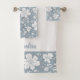 elegant monochrome floral pattern blue grey bath towel set
