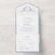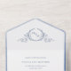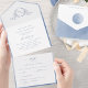 Elegant Monogram and Dusty Blue Watercolor Wedding All In One Invitation