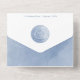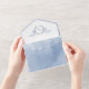Elegant All- in- One tri- fold wedding invitation with perforated RSVP postcard. Design with exquisite hand drawn botanical monogram encasing couples initials and delicate dusty blue watercolor frame in the inside as well as dusty blue watercolor wash sections on the outside. Modern hand written calligraphy elements. Environmentally friendly, as there is no need for extra insert cards, RSVP cards or even envelopes, this invitation has it all! Ability to add both Wedding Ceremony and Reception details, as well as RSVP postcard ready for guests to fill in and mail! Option to order invitations with printed (or hand write later) guest name on the back so you can mail card with no need of any envelope, - OR - if you prefer to use an envelope, simply erase guest name and address characters from text boxes to remove, or add a quote instead. Outside rsvp back with beautiful dusty blue and blue hues watercolor wash background. Attractive design for the elegant, yet practical and eco-friendly couple! Part of our "Dusty Blue Watercolor Botanical Monogram Wedding" Collection with a variety of coordinating products available including mailing accessories and event products. Visit the entire collection with this link: https://www.zazzle.com/collections/dusty_blue_watercolor_botanical_monogram_wedding-119563330291349279