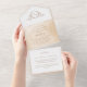 Elegant All- in- One tri-fold wedding invitation with perforated section with wedding details. This design is also available with RSVP instead of details. Design with exquisite beige and cream hues watercolor wash details and delicate hand-drawn botanical monogram with couples initials. Modern handwritten calligraphy elements. Environmentally friendly, as there is no need for extra insert cards, details cards, RSVP online cards or even envelopes, this invitation has it all! Ability to add both Wedding Ceremony and Reception details. Option to order invitations with printed (or hand write later) guest name on the back so you can mail card with no need of any envelope, - OR - if you prefer to use an envelope, simply erase guest name and address characters from text boxes to remove, or add a quote instead. Attractive design for the elegant, yet practical and eco-friendly couple! Part of our "Beige Cream Watercolor, Botanical Monogram Wedding" Collection with a variety of coordinating products available including mailing accessories and event products. Visit the entire collection with this link: https://www.zazzle.com/collections/beige_cream_watercolor_botanical_monogram_wedding-119369254146361074
