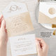 Elegant Monogram Beige Cream Watercolor Wedding All In One Invitation