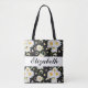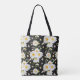 Elegant Monogram Black and White Daisy Pattern Tote Bag