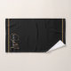 Elegant Monogram Black Gold Script Name Bath Towel Set