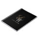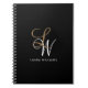 Rose gold and blush pink monogram notebook featuring trendy monogram with initials and a name in white and gold colour on a black background.