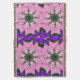 This artwork features a central, radially symmetrical motif with flowing, petal-like shapes in varying shades of purple. Layered throughout the design are stylised white monogram letters, creating a subtle yet distinctive personalised pattern that adds depth and visual interest to the overall composition.