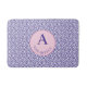 Add a playful touch to your bathroom with the Monogram in Pink Circle on a Blue Abstract Lines Bath Mat, showcasing a whimsical pattern with monogram in the middle of it.. The abstract design brings a modern vibe while maintaining chic and stylish aesthetic. Crafted from durable, water-resistant fabric, this curtain is both functional and fun, ideal for anyone looking to brighten up their bathroom space.