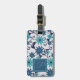 Elegant modern blue white turquoise flower pattern luggage tag. Customise the front with your monogram letter and add your contact details on the back. Great as a gift.