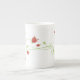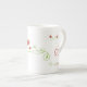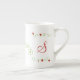 Lovely white bone china mug, with pretty graphic art of roses, on flourish style vines, with a vintage red one letter script monogram, on each side of the cup. Beautiful mug for your morning coffee or tea and makes a elegant gift idea.