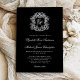 Elegant Monogram Crest Black Wedding Invitation