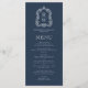 Elegant Monogram Crest Navy Blue Wedding Menu
