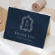 Elegant Monogram Crest Navy Blue Wedding Thank You Card