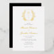 An elegant wedding invitation features a floral botanical gold foil line art crest with your monogram in gold foil. Personalise with all the important details such as your names, wedding date, time and venue location. The reverse side is coordinated in black
