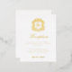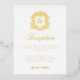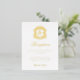 This formal elegant gold foil wedding reception enclosure card features a vintage crest with fancy script monogram initials of the bride and groom. It is the larger Reception card size: 5.6" L x 4.25".