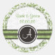 Elegant Monogram Damask Save The Date Wedding Stickers. Make a lasting impression with this Elegant Monogram Damask Save The Date Wedding Stickers . There is a stripe along the sticker and a circle with an elegant monogram on it. The beautiful light green and white damask pattern background adds style and finesse. Designed by Olympia. Classic and sophisticated yet contemporary at the same time. Design available in several colours. Personalise it with your text. You can change text and use it as Thank You stickers or any other use you think.