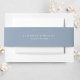 Elegant dusty blue wedding invitation belly band featuring your monogram names in classic white serif typography and your wedding date in simple white typography.