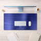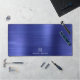 Custom Elegant Monogram Faux Navy Blue Brushed Metallic Desk Mat.
