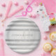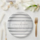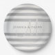 Elegant Monogram Faux Silver Gradient Grey Stripes Paper Plate