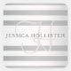 Elegant Monogram Faux Silver Gradient Grey Stripes Square Sticker