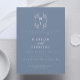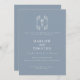 Elegant Monogram Floral Crest Dusty Blue Wedding Invitation