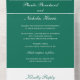 Unique All In One wedding invitation template with rsvp card for a convenient and low cost option for budget savvy couples. The traditional style wedding invitation features a classic and simple design with your two initial monogram along with your names in an elegant calligraphy. All design elements are in a jewel tone emerald green and may be changed by using the design editing tool. This classy design is perfect for a formal wedding.