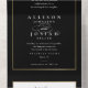 This Classic Elegant Gold Wedding Invitation is simple and versatile. It features a chic white and black design with a monogram, script details, simple gold frame and formal editable text. There is a tear off RSVP Card. Click the edit button to customise this design.