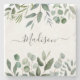 Add a touch of nature to your table with this elegant stone coaster! Featuring eucalyptus and tropical leaves with a custom script monogram, it's suitable for greenery lovers.
