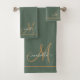 Elegant Monogram Green Gold Script Name Bath Towel Set