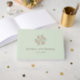 Elegant wedding guest book with the bride's and groom's monogram and greenery leaves, and names below, in real foil. The light sage green background colour can be changed in the design tool.