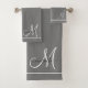 Elegant Monogram Grey White Script Name Bath Towel Set