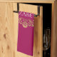 An elegant and chic hot pink and gold flourish monogram kitchen towel. Add your name between the gold floral flourish on the front. Designed for you by Blackberry Boulevard.