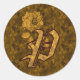 Elegant Monogram Initial P Gold Peony Sticker