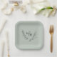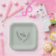 Elegant Monogram Laurel Wreath Sage Wedding Paper Plate