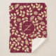Elegant Monogram Leaf Daisy Pattern Burgundy Bath Sherpa Blanket
