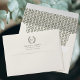 Elegant wedding envelopes featuring a simple laurel wreath framing the couple's initials. Inspired by 1920s design, it blends classic formality with modern flair, using a traditional serif font, and matching leaf pattern printed inside. You can personalise the template with the couple's names, monogram, and return address — all the text can be customised to suit your occasion. Perfect for invitations, save the date cards, bridal showers, rehearsal dinners, or personal stationery. Printed colours: sage green, and off-white, ivory cream. Shop the collection for matching stationery and supplies for sale online!