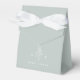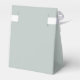 Light dusty sage green wedding favour box with a minimalist line art leaf monogram design.