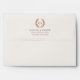 Elegant wedding envelopes featuring a simple laurel wreath framing the couple's initials. Inspired by 1920s design, it blends classic formality with modern flair, using a traditional serif font, and matching leaf pattern printed inside. You can personalise the template with the couple's names, monogram, and return address — all the text can be customised to suit your occasion. Perfect for invitations, save the date cards, bridal showers, rehearsal dinners, or personal stationery. Printed colours: terracotta, brown, and off-white, ivory cream. Shop the collection for matching stationery and supplies for sale online!