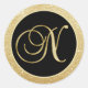 Elegant Monogram Letter N Black Gold Glitter Seals